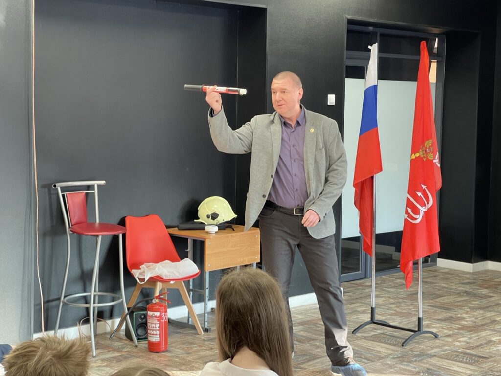 Особый интерес у ребят вызвали образцы пожарной технической продукции, извещатели пожарные, огнетушитель ручной «Стражник», огнетушитель порошковый, а также шлем пожарного. О технических характеристиках представленной продукции, дети не только узнали много нового, но и смогли лично ознакомиться с представленными образцами.